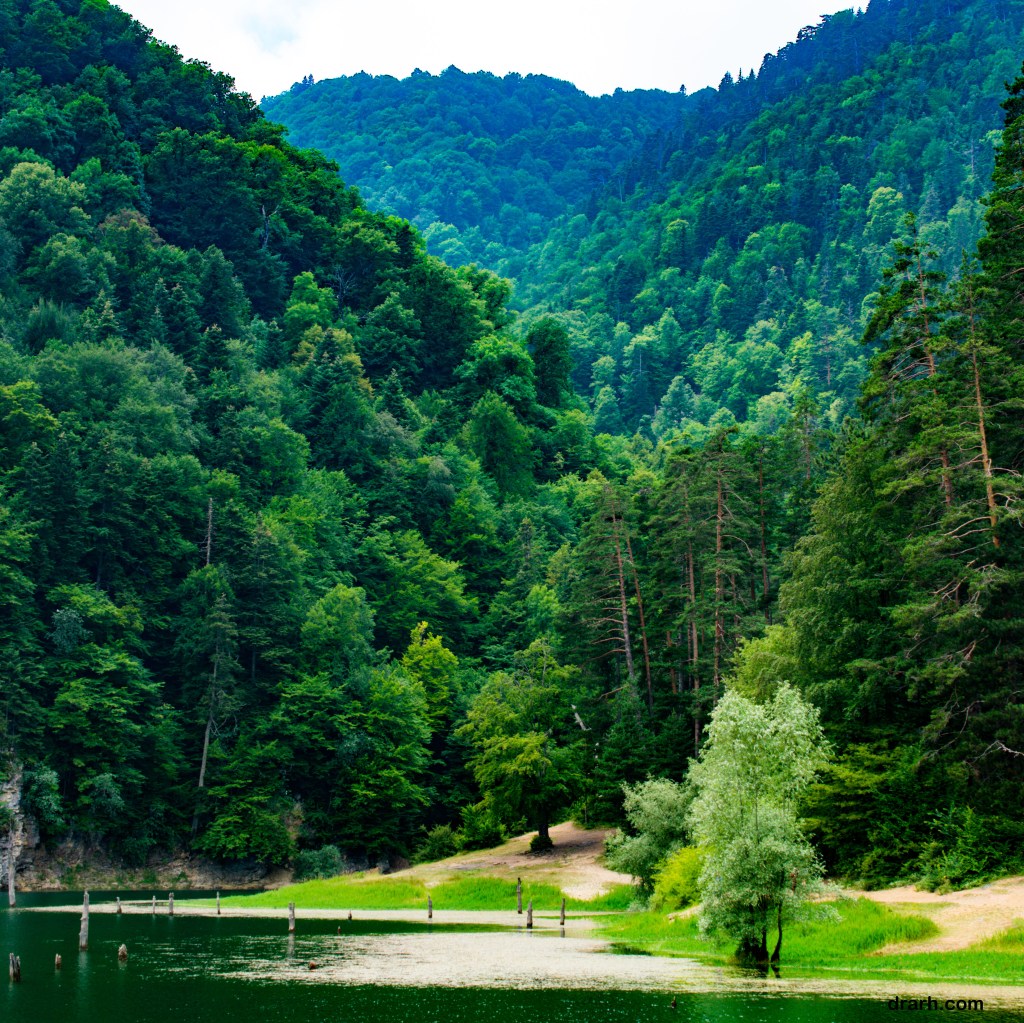 Göl zamanında dağın zirvesinin üzerindeki orman ile birlikte çökmesi ile oluşmuş, bu sebepten gölün içinde çürümekte olan ağaçlar dikili kazıklar misali ilginç görüntüler oluşturmakta.