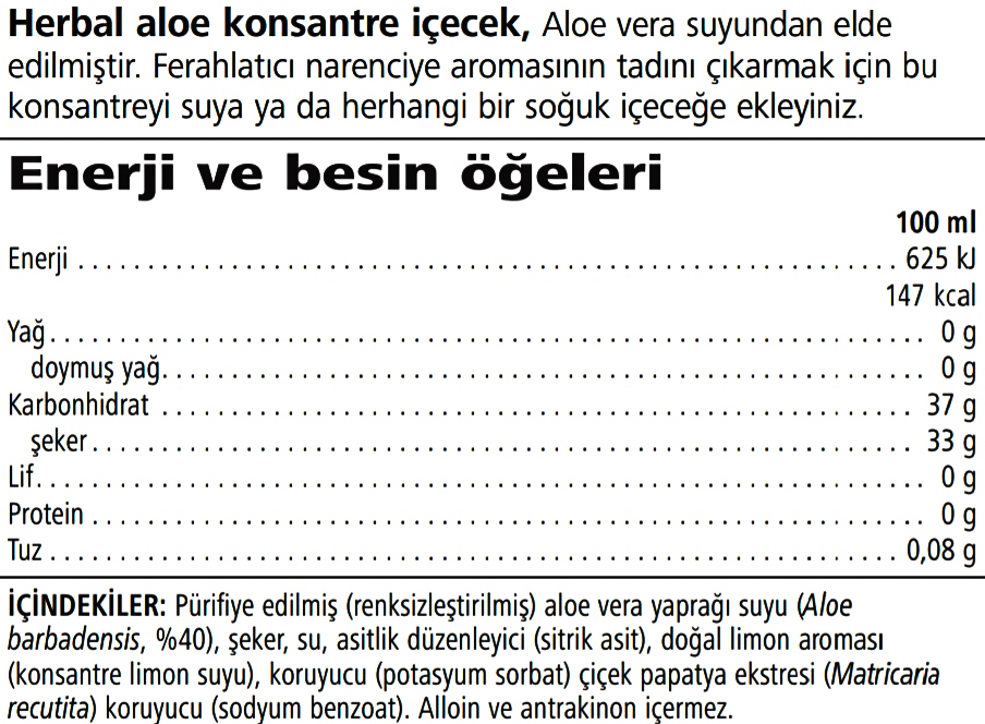 - Aloe vera yaprağı suyundan elde edilmiştir.