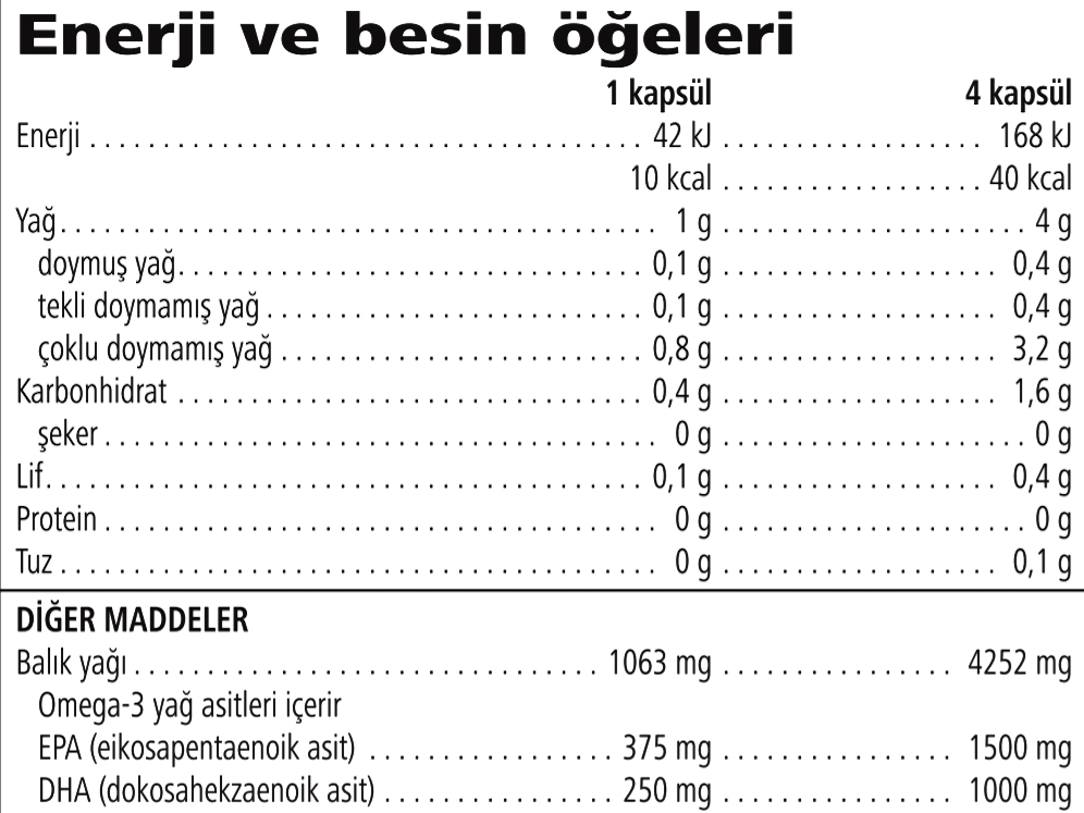EPA ve DHA kalbin normal fonksiyonuna katkıda bulunur ve normal kan trigliserit seviyesinin korunmasına katkıda bulunur.